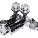 2層AB共押出タイプと3層ABA共押出タイプは、ともに2台の押出機で構成されています。両者の主な違いはダイヘッドの材料流路の設計です。