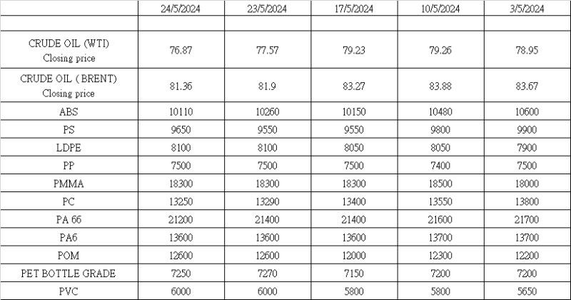 季節的な低需要と中国の不動産市場の崩壊も市場心理を悪化させ在庫削減を妨げています。例えば、現在PPの在庫は73万5000トンです。さらに、PP、PC、およびPETの原料であるPTAの新しい生産が稼働し始めています。POMおよびPMMAの価格上昇に続いて、石油化学企業は価格上昇を利用するために生産能力を増強しました。夏のオフシーズンと慎重な市場心理により、状況は引き続き不安定なままです。市場参加者は取引を確定する前に、市場の方向性がより明確になるまで端午節が終わるのを待っています。