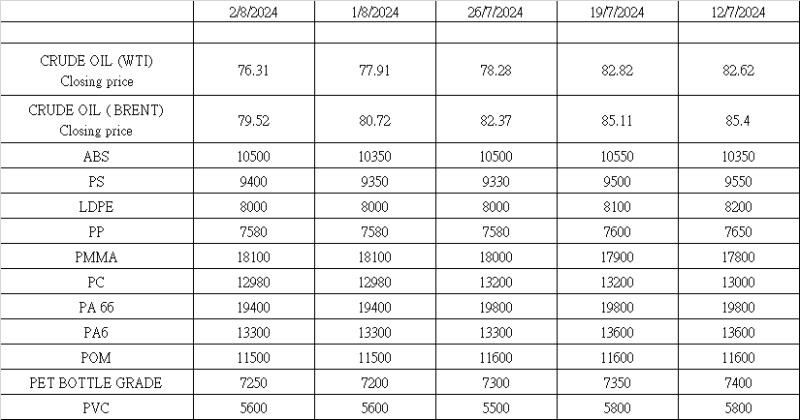 PP、ナイロン、PET、PVCなど一部の価格は低迷を続けていますが、ABS、HIPS、LDPE、PMMAなどの価格は上昇しています。