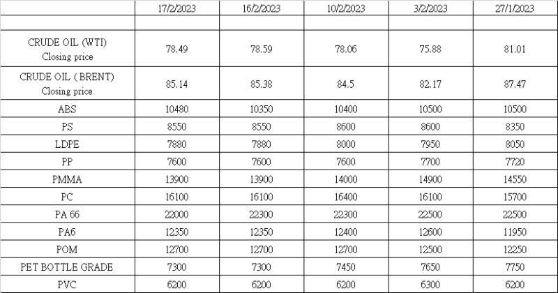 2023年2月18日現在のプライム、リサイクル、スクラッププラスチックの市場更新情報です。
