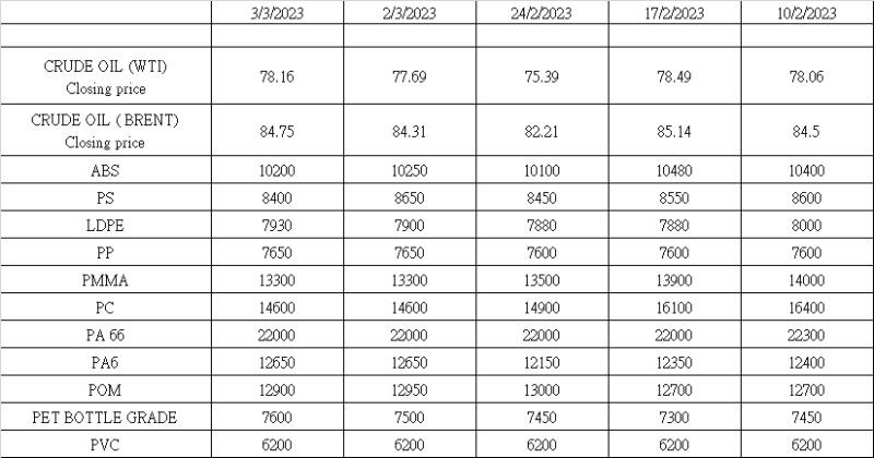 2023年3月17日現在のプライム、リサイクル、スクラッププラスチックの市場更新情報です。