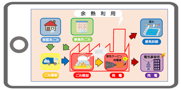 プラスチックを燃やして出た熱を利用する方法です。蒸気タービン発電の熱源や、施設内の暖房や給湯に利用されることが多いです。