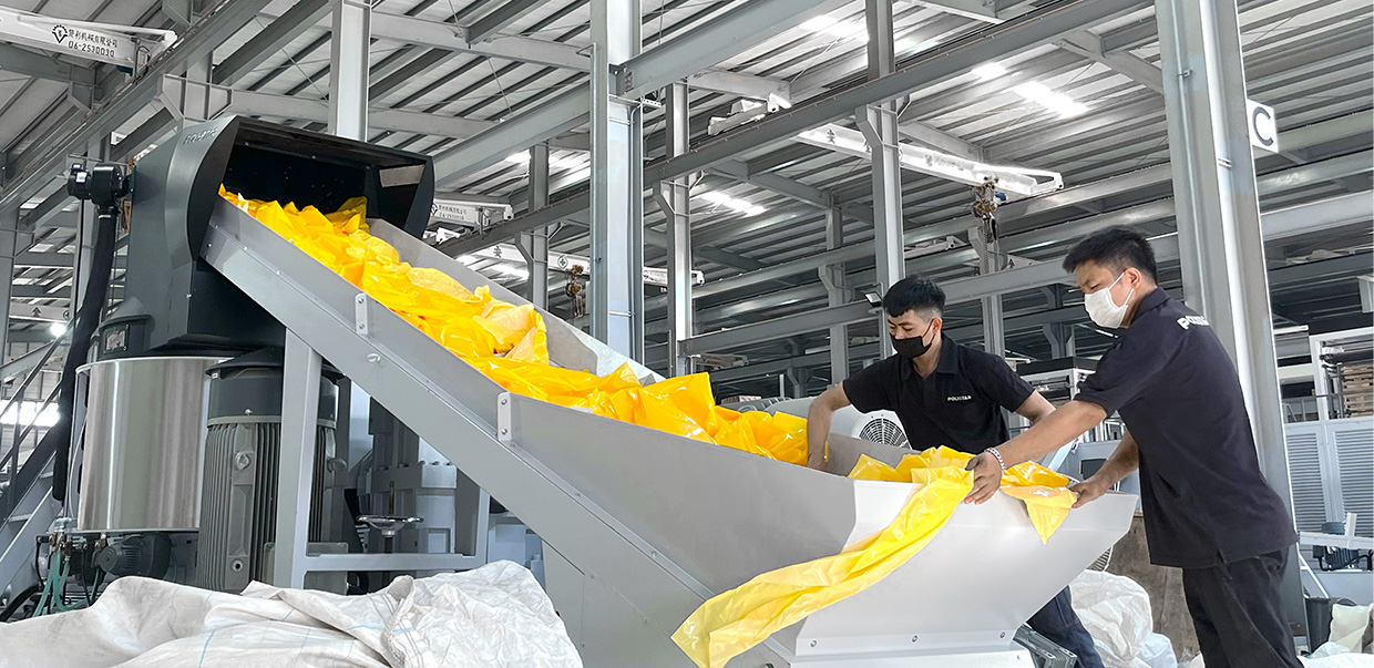 PPヤーン、PP織布や粉砕しづらいプラスチックをリサイクルする場合、従来の方法では、押出機に投入する前にあらかじめ粉砕する必要がありました。