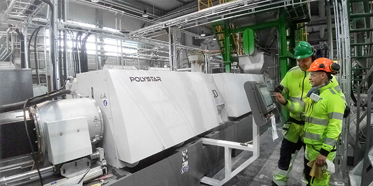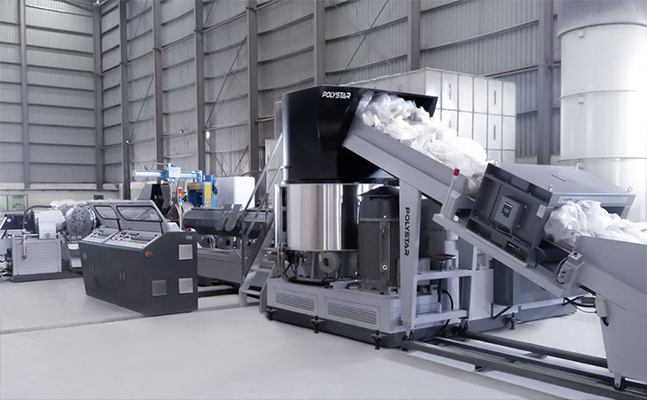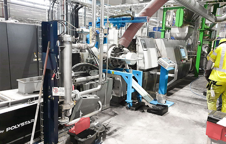 FIMIC社レーザーフィルターはろ過性能を高め、POLYSTARの2段式押出機は脱ガス性能に優れており、異物の多い廃プラスチックを再生する用途に最適です。
