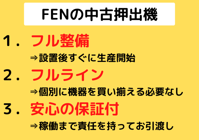 中古押出機販売 FENの3大特徴