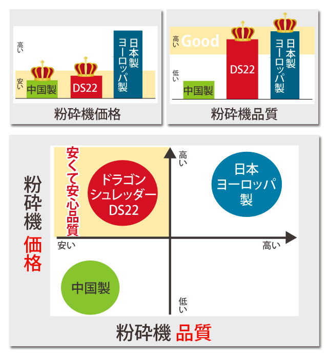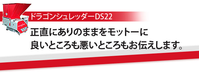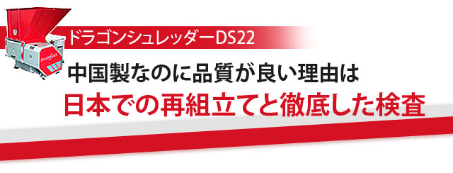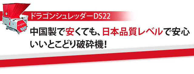 それを解決する、日本製より安くて、日本人でも安心して使える品質の破砕機がドラゴンシュレッダーDS22です。