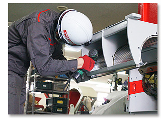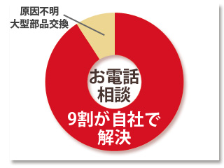 よく“●●をしていたら動かなくなった“等のご連絡を頂きますが、実は”安全装置が働いてた”など、電話でご説明することで直ぐに解決できる事例がほとんどです。消耗部品の交換もお客様自身で対応ができ、お電話いただく9割は自社内で対応が完了します。残りの1割は、原因不明での調査や、大型部品の交換でお客様の元へ伺っています。