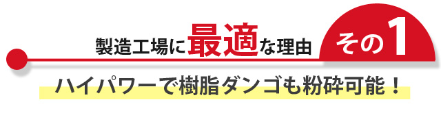 とは言え粉砕機は安いものではなく、ある程度の初期設備投資は必要です。製造事業者の皆さんにとっては ”自分たちの工場で排出するプラスチックスクラップを粉砕したいだけだから、高いものだと採算が合わない” と考える方も多いはずです。