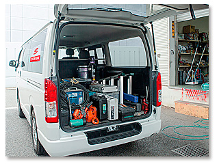 メンテナンスが自社でできるドラゴンシュレッダーDS22ですが、大物部品の交換などはどうしてもサポートが必要です。そんな時に直ぐユーザーの元へ向かえるよう、サービスカーを用意。全国をカバーできるように配備しています。広島・東京・大阪・鹿児島、各地の協力会社よりユーザーの元へ駆けつけます!