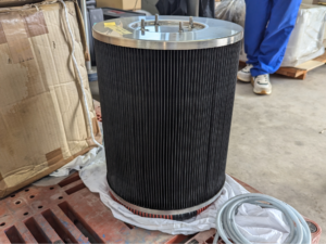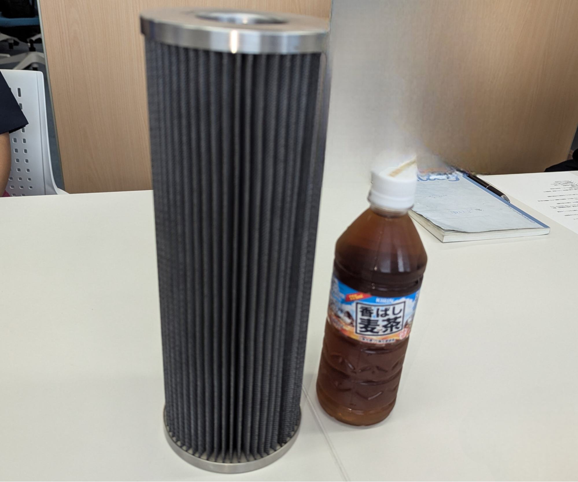 こちらが実物のフィルターです。このサイズで10㎡の表面積があります。約6畳の部屋と同程度の表面積ですね。