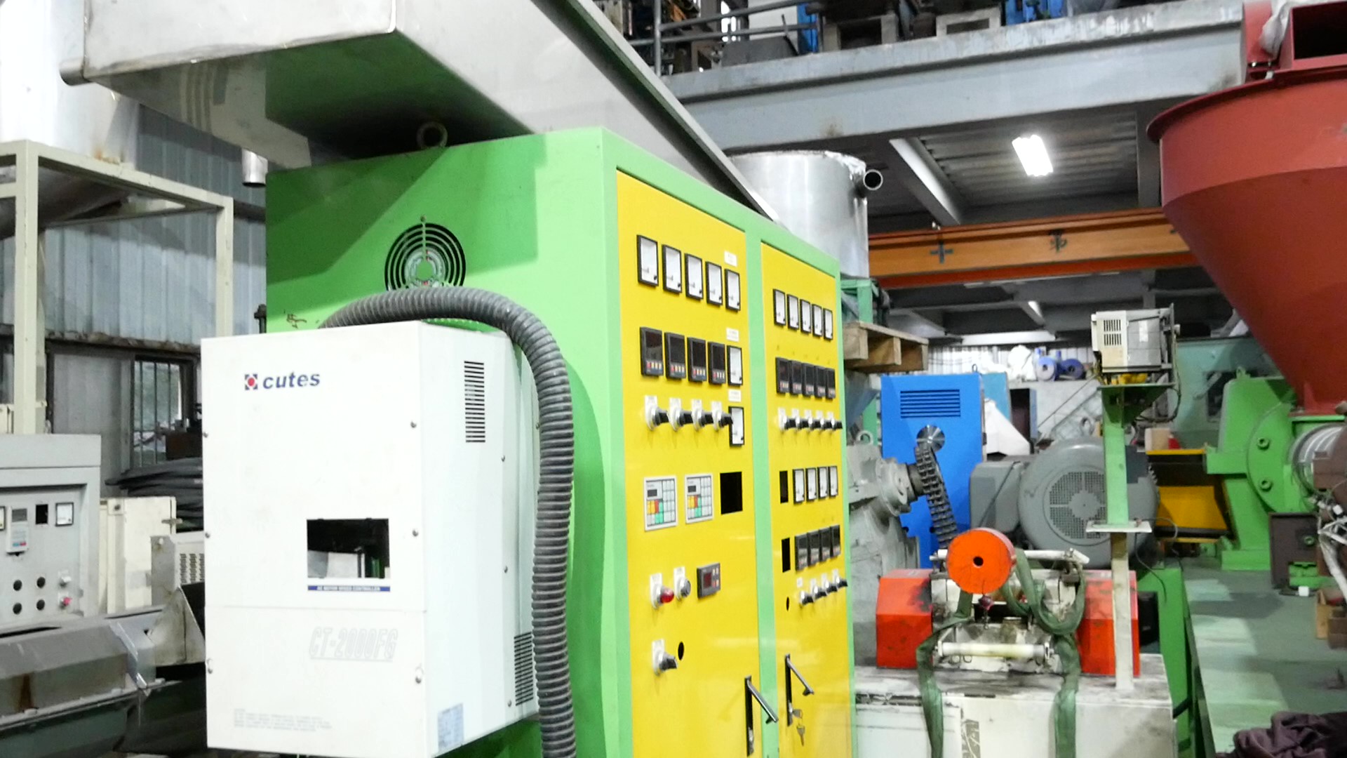 ライン構成:フルライン(押出機二段式+水槽+ペレタイザー+振動ふるい+キャッチャータンク)