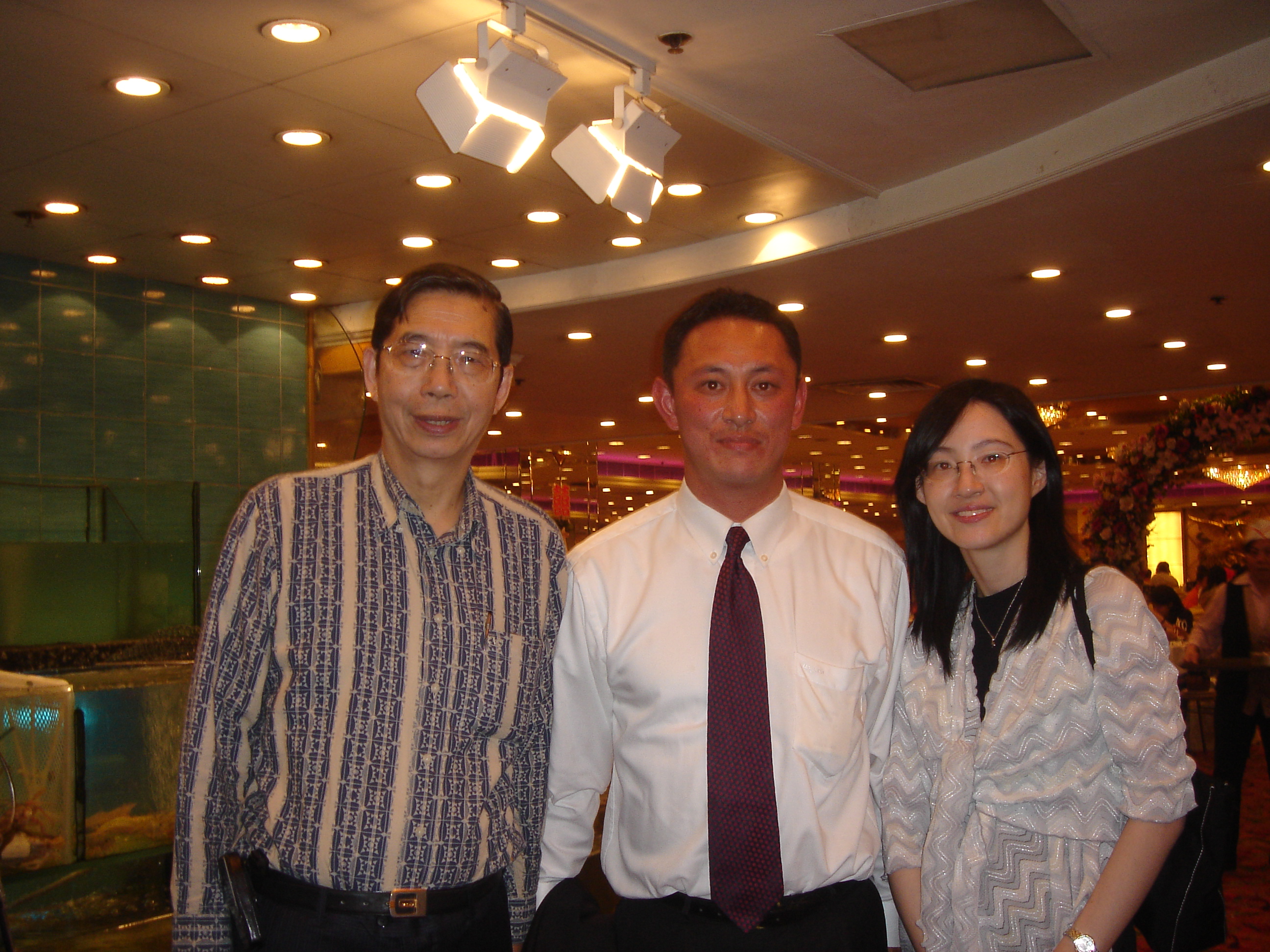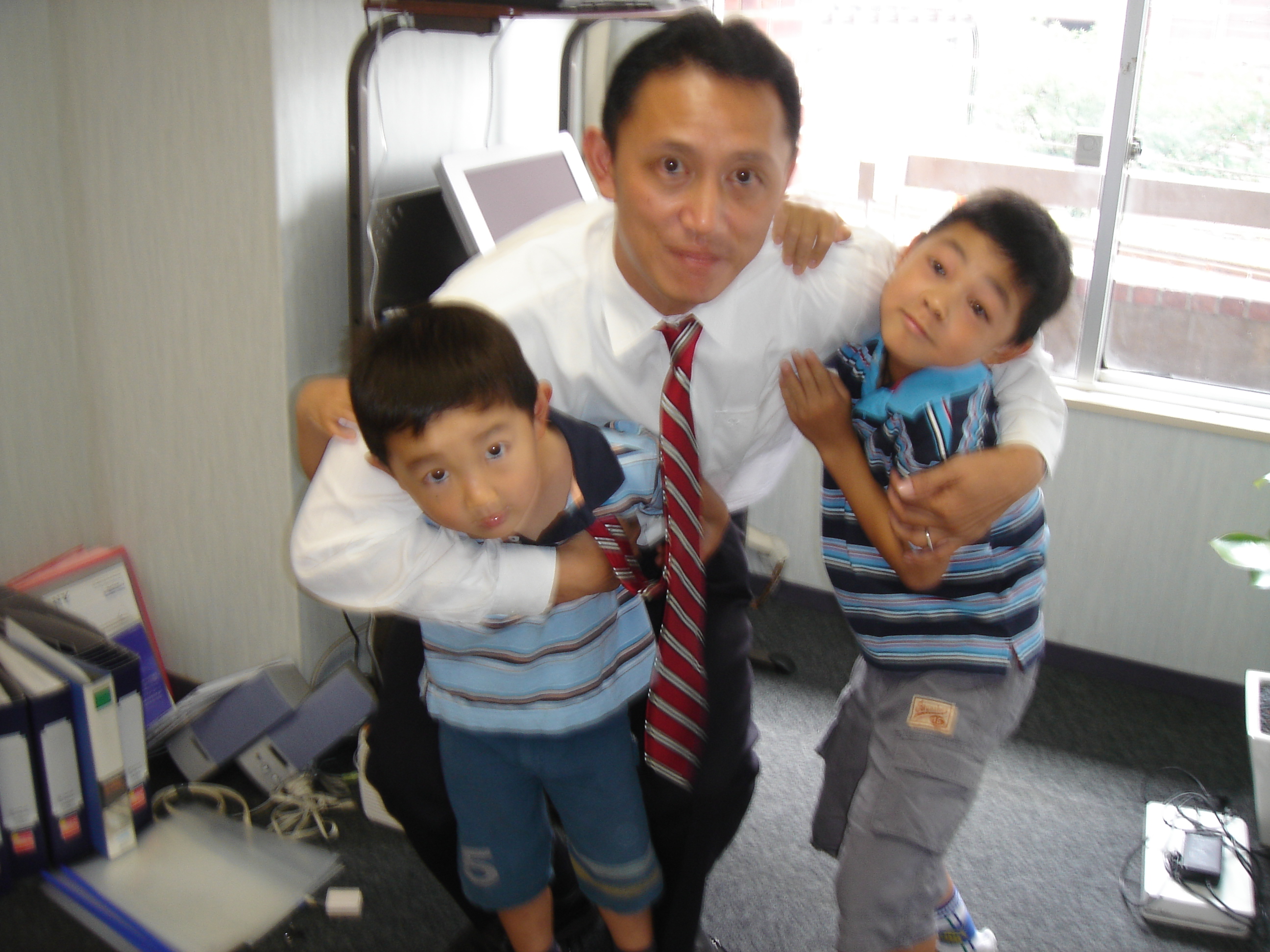 左:初めてのワンルームのオフィスにて息子達と 右:香港出張でバイヤーと
