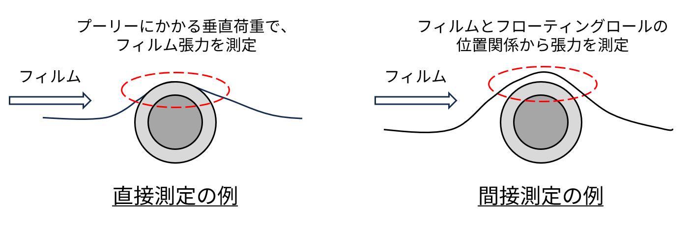 生産効率と品質管理のためには、フィルムの張力を一定に保ち、張力の変動を正確にコントロールすることが重要です。張力測定には、直接測定と間接測定があります。