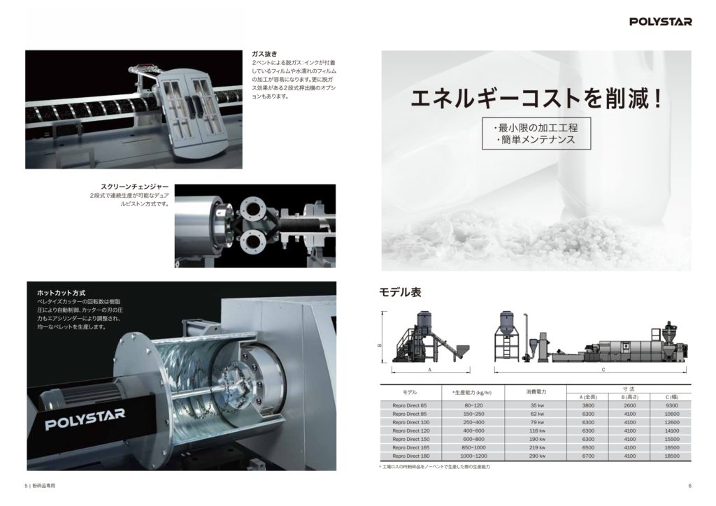 POLYSTARが供給をしている押出機のなかで一番汎用性が高い、あるいは一番一般的なタイプの形の押出機であるRepro-Directについてパンフレットの解説をします。