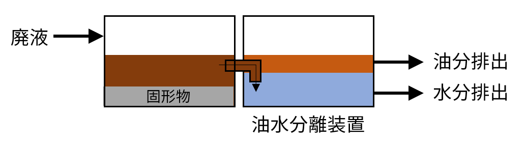 この方式は、廃液中の油と水が自然に分離しやすい場合や、重力による分離が効果的な場合に使用されます。