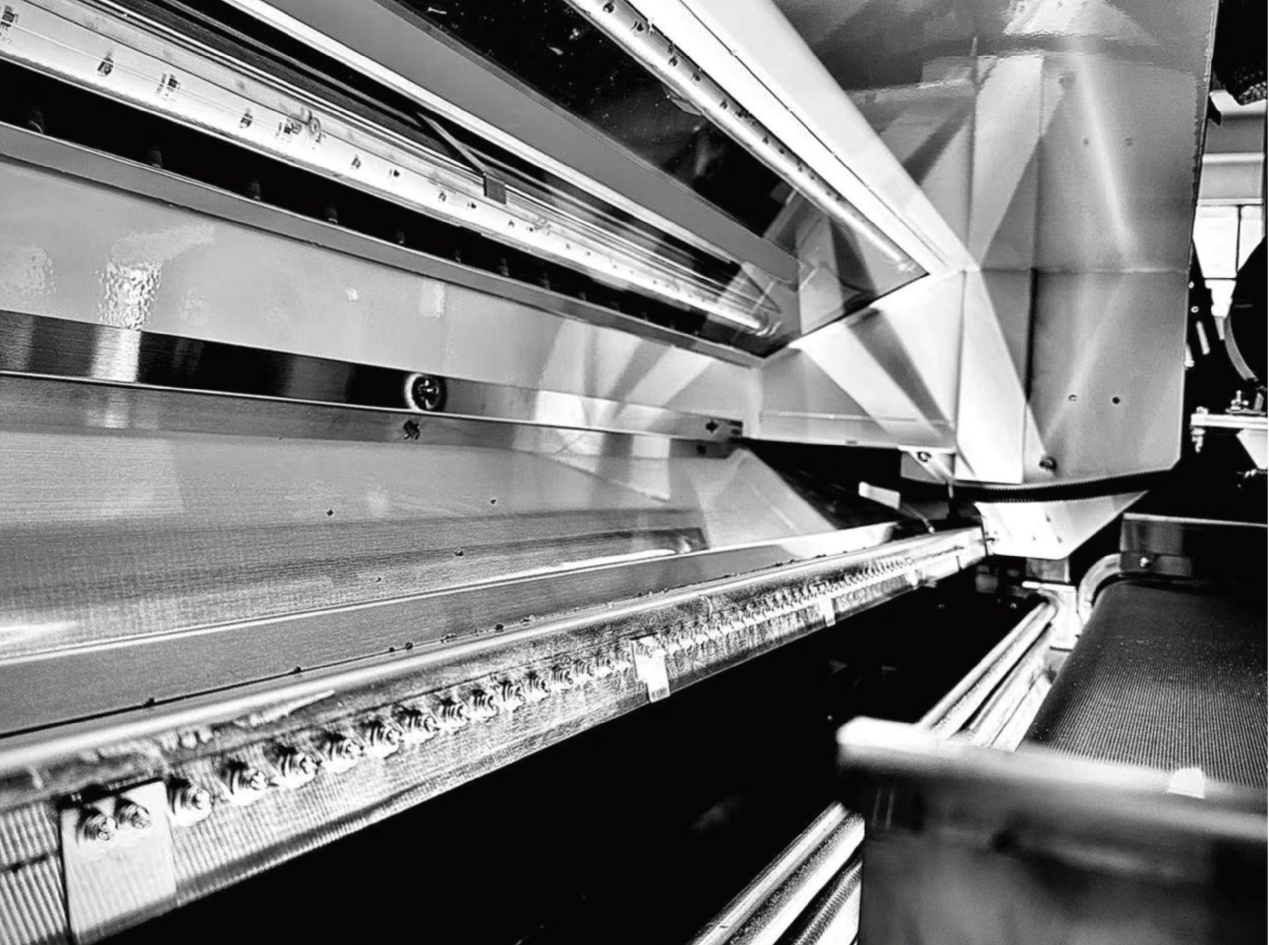 • 全長 4,277mm: 振動フィーダーによる整列スペースを十分に確保し、フレークが重ならないように広げてスキャンすることで、検知ミスを防ぎます