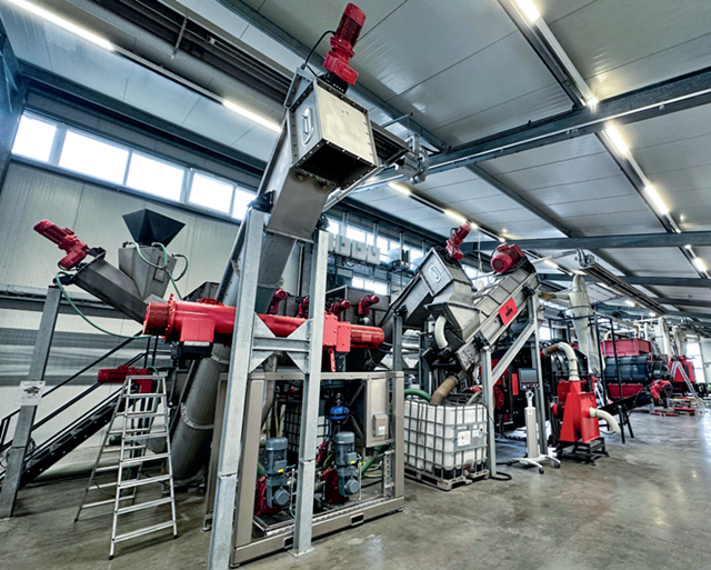 WIPA社では、この予備洗浄機、高速洗浄機、脱水機、湿式選別機、減容機を自由に組み合わせて他社よりも少ない機械点数で廃プラに合わせた洗浄を実施します。