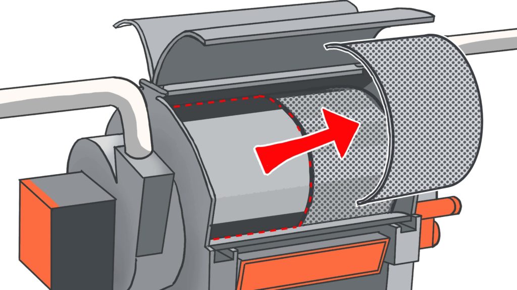個別のスクリーン要素により、異なるスクリーン穿孔を使用することもできます。たとえば、機械の供給セクションに、後部よりも大きなスクリーン穿孔を取り付けることができます。