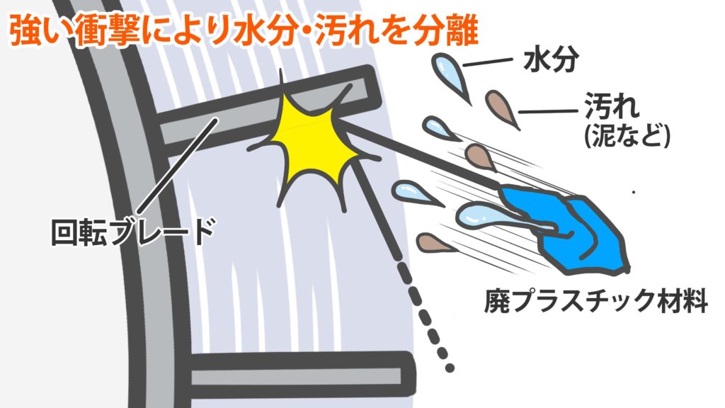 秒速80mで高速回転するブレードが汚れや水分を強い衝撃で落とします。