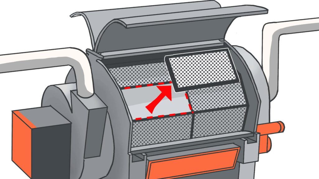 マシンのフィードセクションのスクリーンプレートは、後部のプレートよりも集中的に使用されるため、摩耗が早くなります。