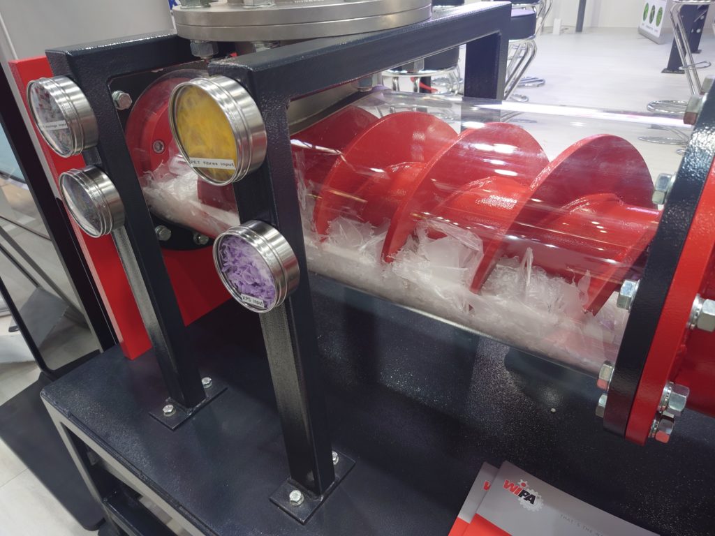 WiPaプラスチック減容機では、高温洗浄プロセス後のPETフレークの結晶化も可能です。