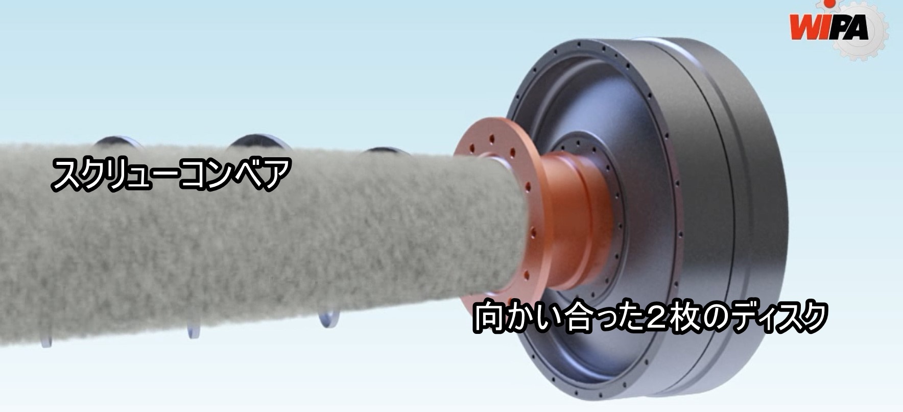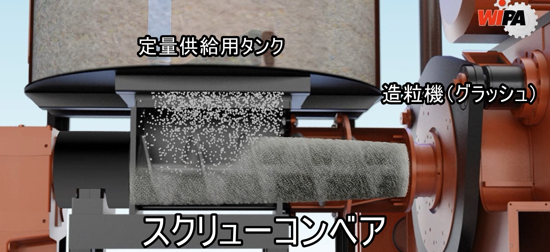 定量供給機で材料を均質化しながら、一定量をディスクに供給します。