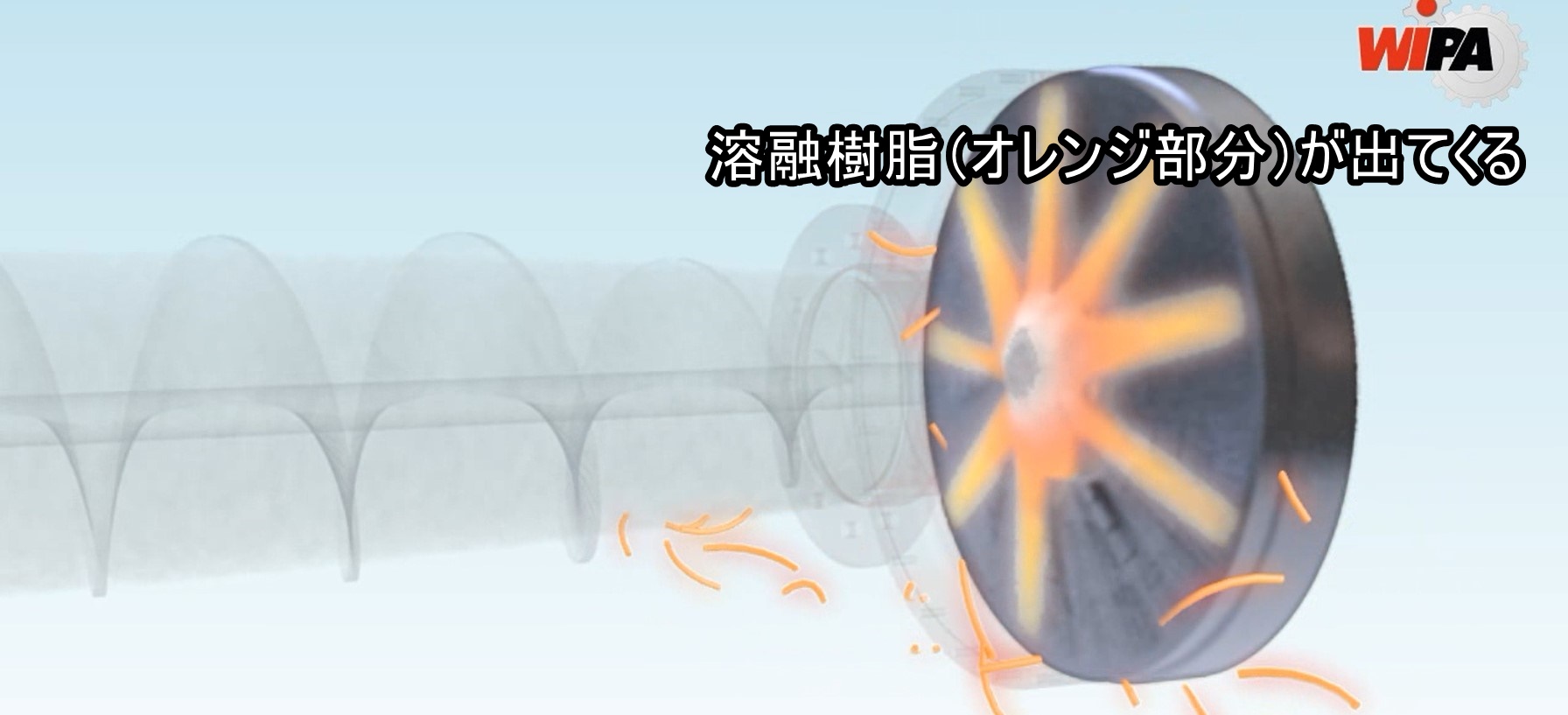 WiPaプラスチック減容機が材料へ与える熱劣化の影響は極めて小さなものです。従来のグラッシュミキサーや標準的な押出機で溶融するよりも、かなり温度と時間を低くすることができ、熱履歴を最小化します。