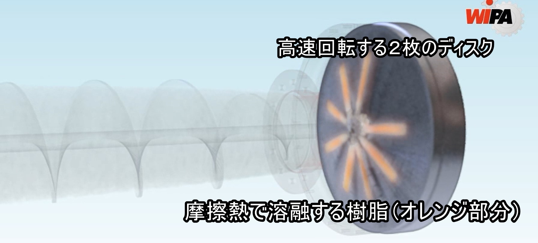 対になった2枚のディスクの中に入った樹脂が溶融し始めます。