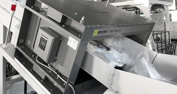 ドイツメーカーの金属探知機を採用しています。金属片が入るとブザーが鳴り、ベルトコンベアが停止しして金属片の混入を防ぎます。