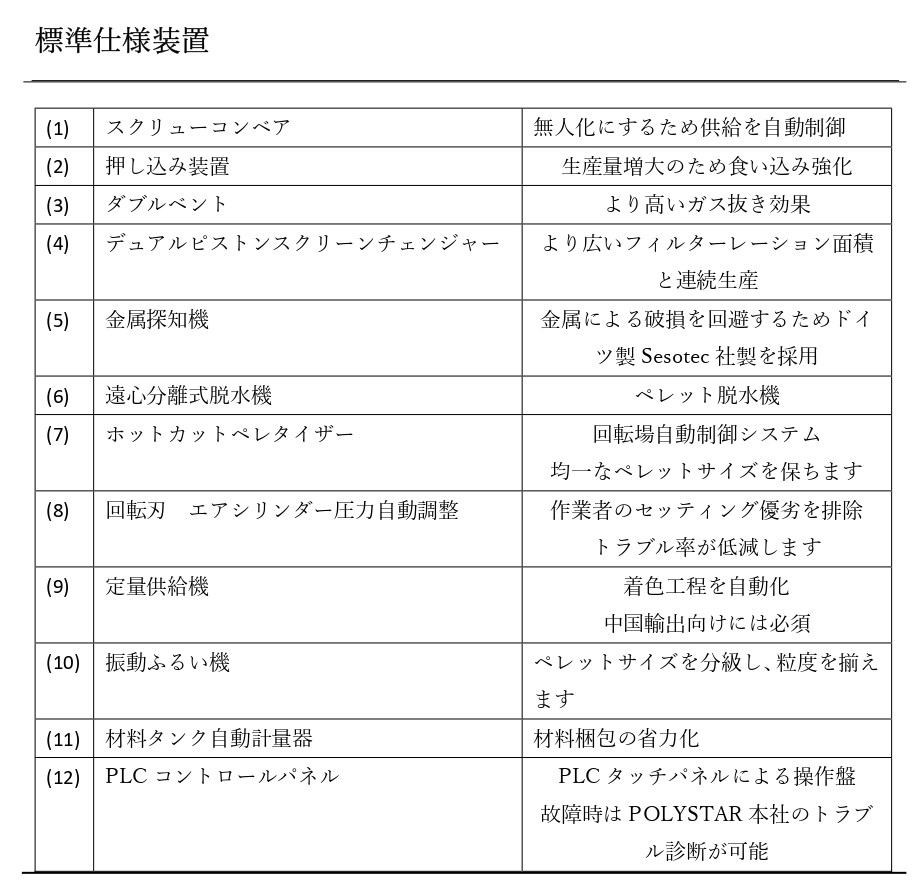 POLYSTAR 押出機 Repro-Direct 標準仕様の解説