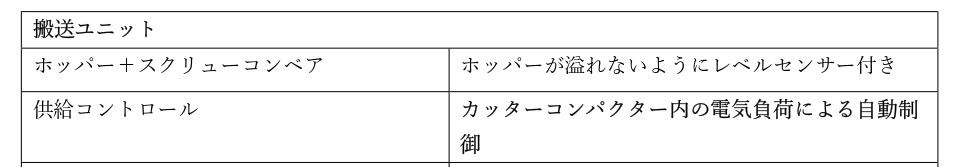 ここの上にフレコンを吊るして粉砕材料をフィードしていきます。下のホッパーはスクリューコンベアがついていて、上のホッパーに供給します。供給のコントロールですが、ホッパーにレベルサンサーがついており、レベルセンサーが感知するとコンベアが止まるように制御されています。