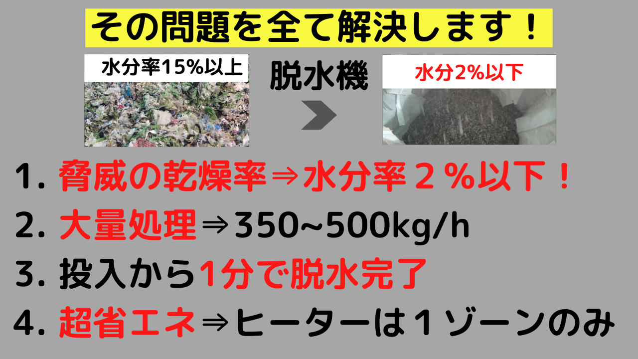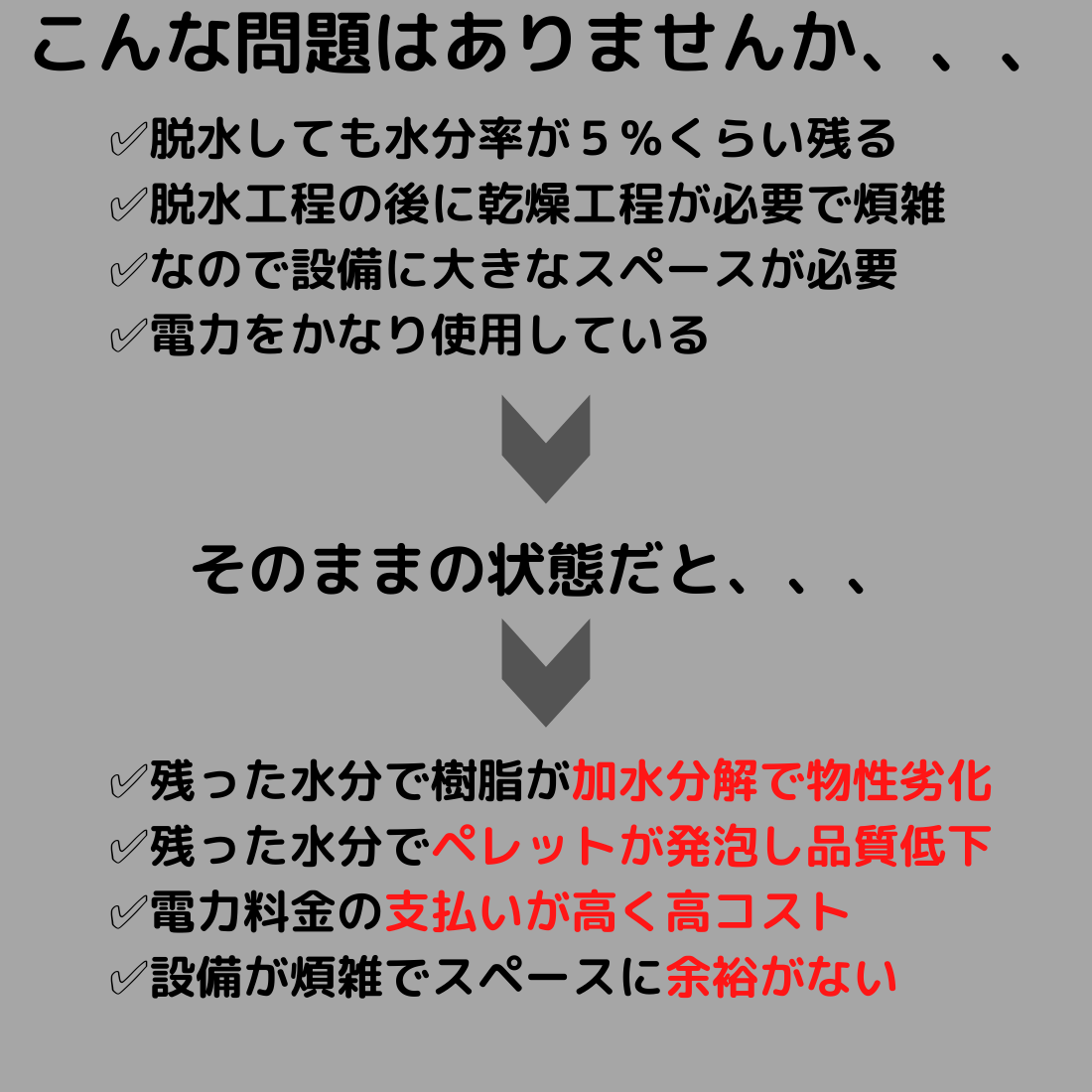 従来方式の脱水機・乾燥機と比べて違いはご理解いただけましたでしょうか。