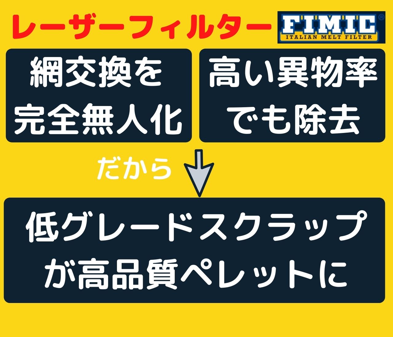 今大反響をいただいている異物を無人で、かつ連続的に除去するイタリアのFIMIC社製レーザーフィルターについてご説明をさせていただきます。