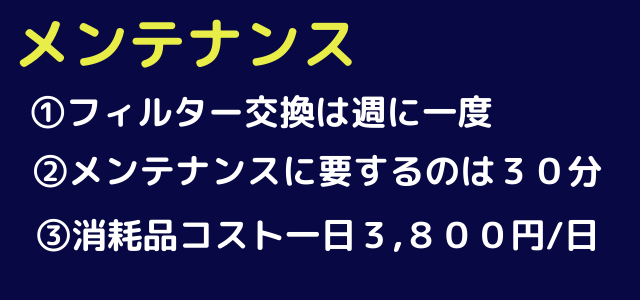 FIMICフィルターを設置すると、一日当たりのコストは3800円です。一方、異物が
