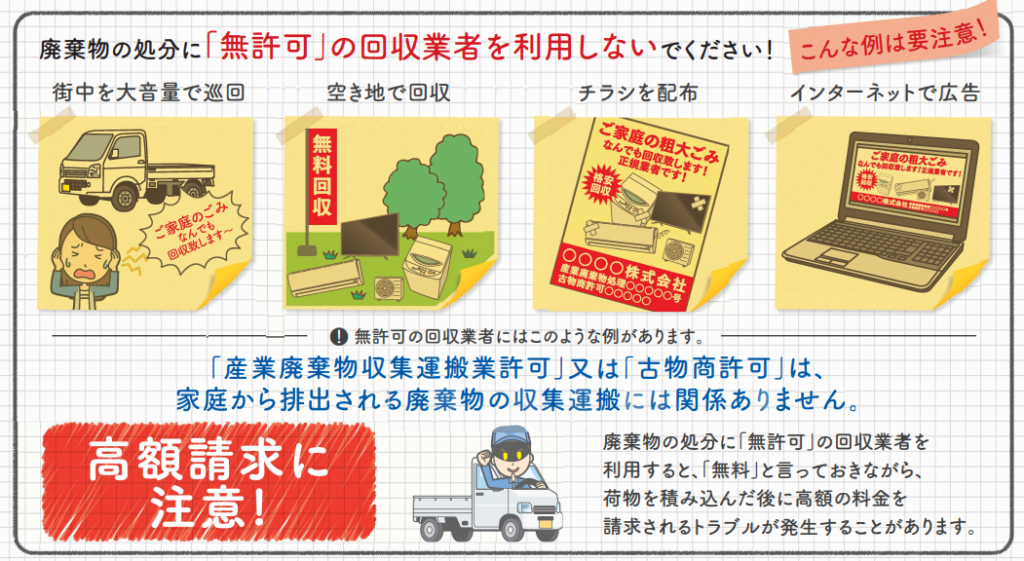 「無料」という言葉につられてすぐに利用するのではなく、一般廃棄物運搬業の認可を受けているのか確認しましょう。