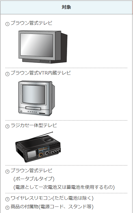 一方、ブラウン管式のモニターやプロジェクションテレビなどは対象ではありません。