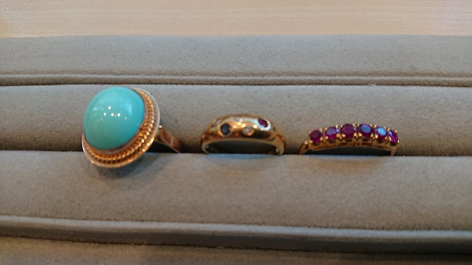 僕の祖母が持っていたターコイズとダイヤ、ルビーを鑑定してもらい、リメイクしてもらえるそうです。