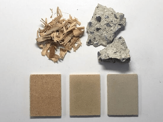 本研究グループは、コンクリートがれきと廃木材を粉砕し、これらを混合した粉体をホットプレスすることで、新たな土木/建築材料としてコンクリートがれきを再生可能なことを発見しました