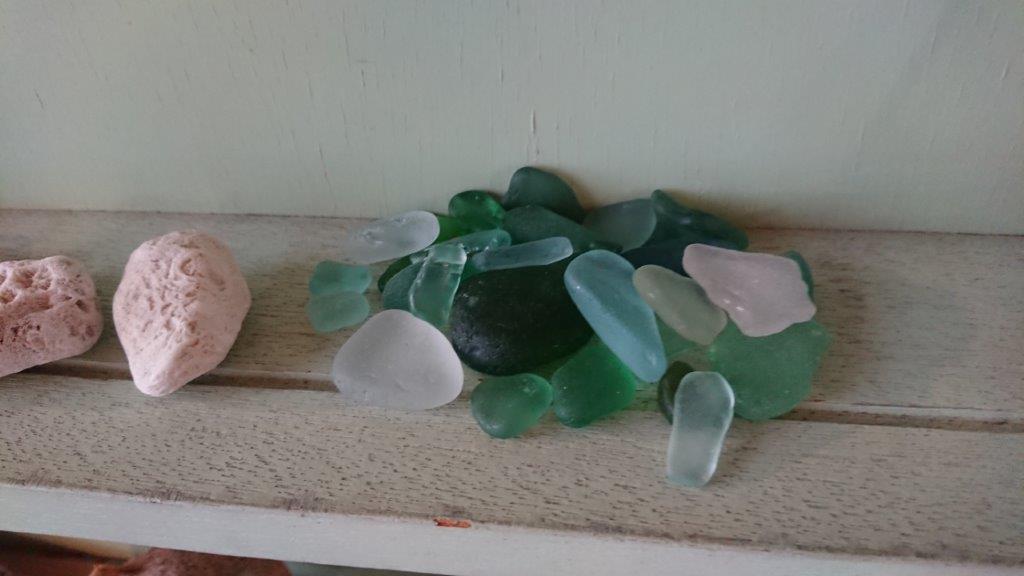 シーグラス化したびん。CAPPAさんの飾り棚で。プラスチックよりは数段いいですね。