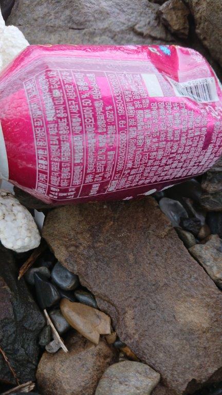 軽くて漂着しやすい。キャップだけというのも多い。ボトルのバーコードで漂着物の割合の推定。韓国が多い。