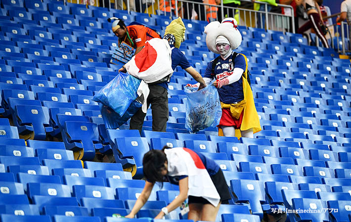選手のみならず、日本代表のサポーターがスタンドのゴミ拾いをするのも有名になっているようです。これまた世界的にみて「普通ではない」レベルの行動と言えます。