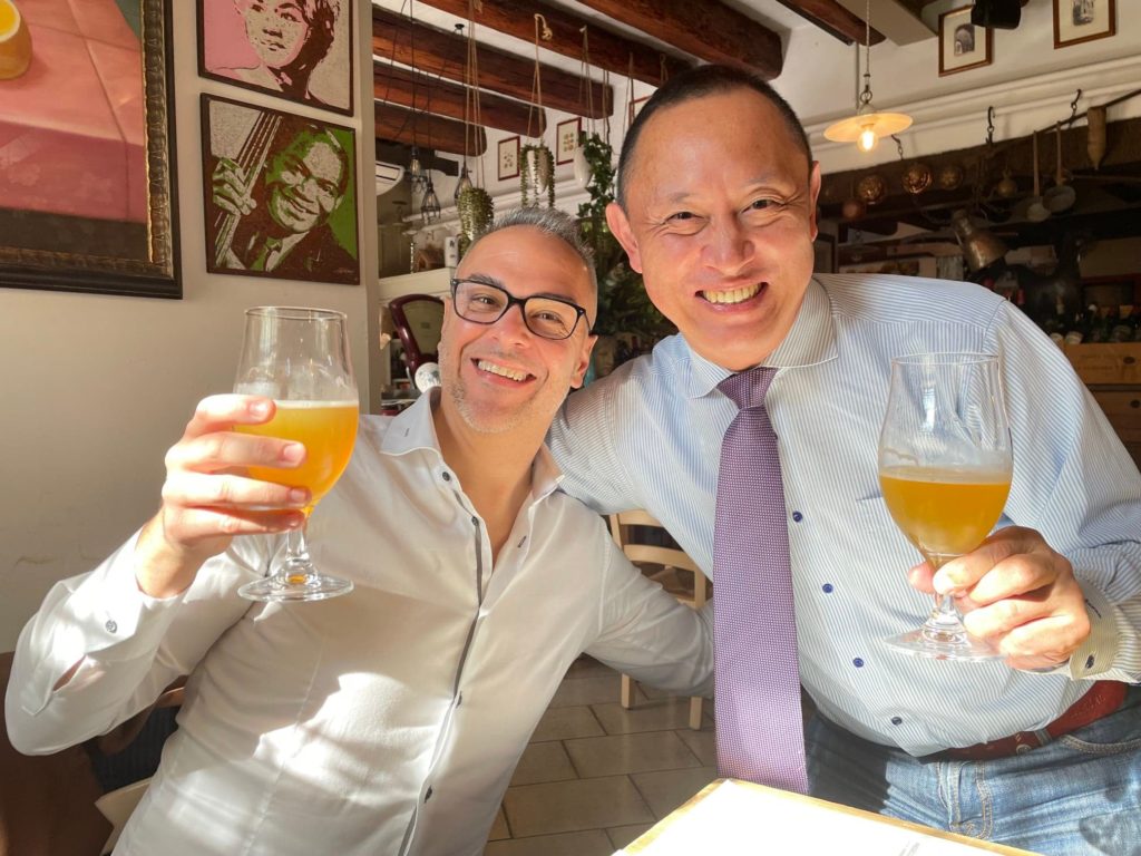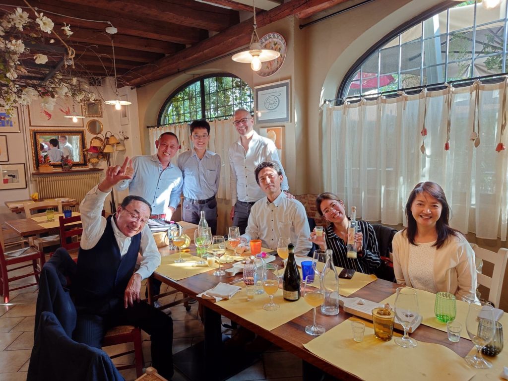 左は日本市場のサブ担当のMr.Michele。真ん中は創業社長。