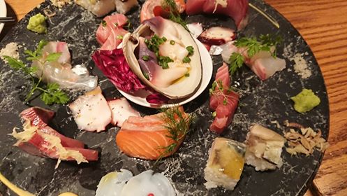 やはり魚金名物の刺身盛り合わせの流れを引き継いで、イタリアン風にアレンジされたカルパッチョが豪華です。