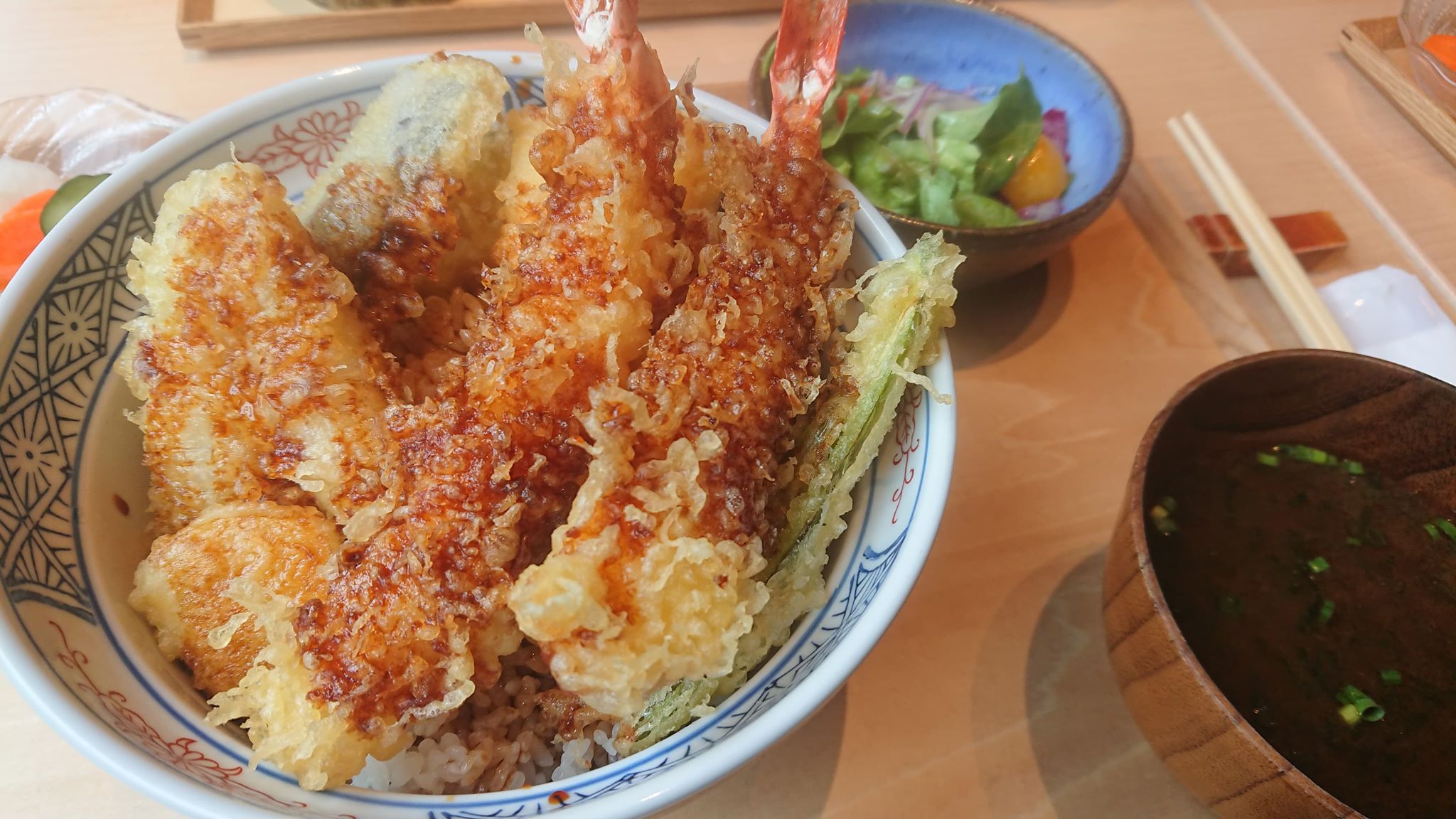 今日は天丼のご飯大盛りをいただき、大盛りは無料でした!