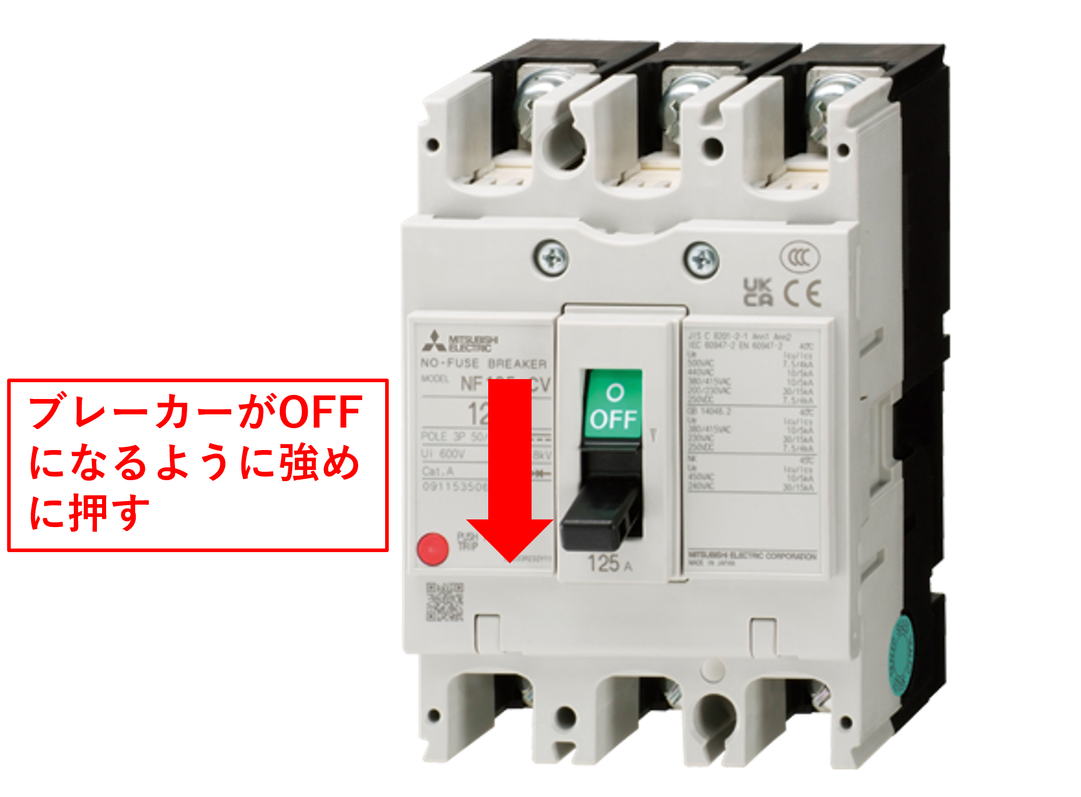 一度、OFF側に強めに押し込み、トリップを解除します。