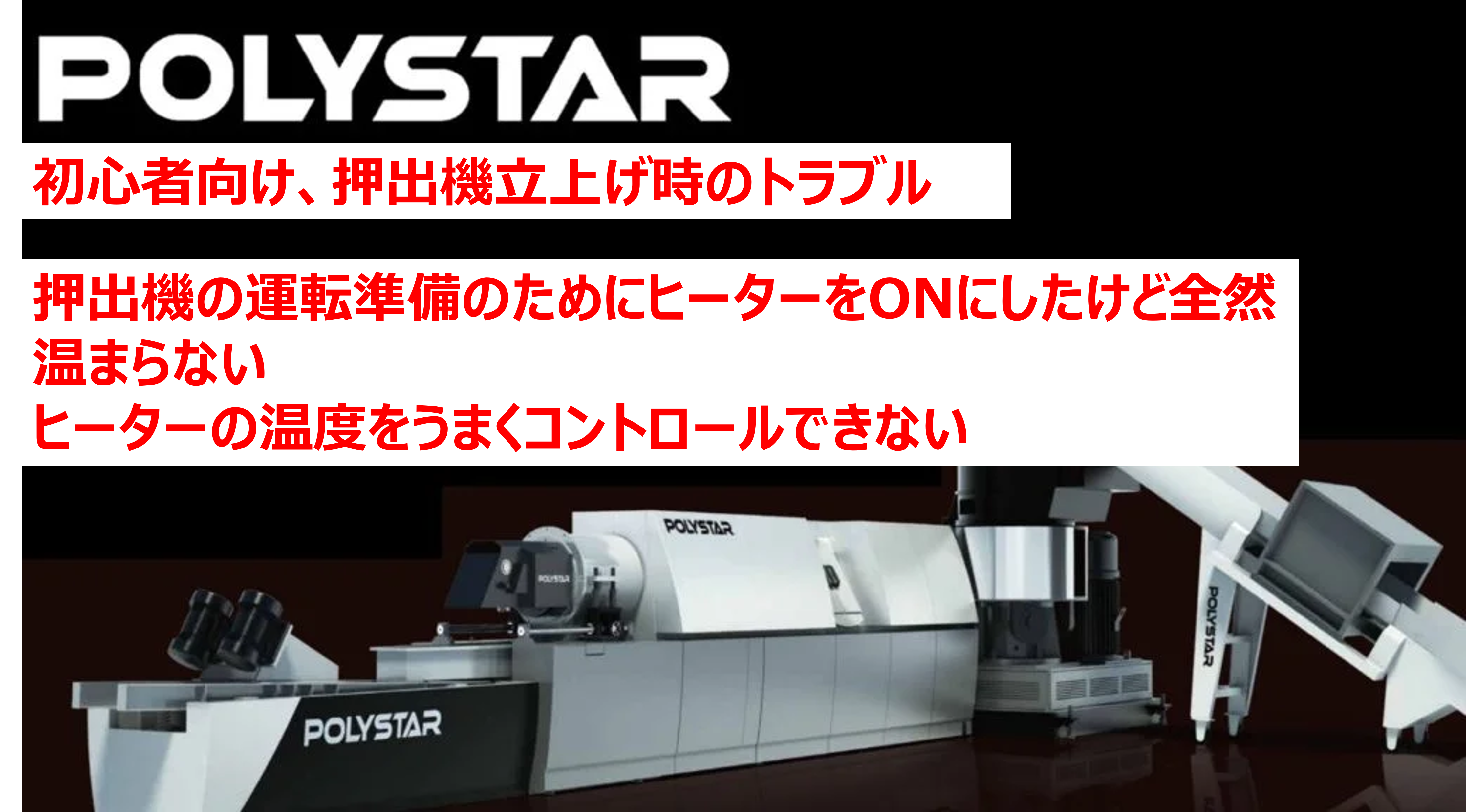 「押出機の運転準備のためにヒーターをONにしたけど全然温まらない」、「ヒーターの温度をうまくコントロールできない」という時のトラブルについて説明しました。