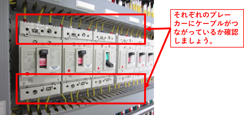 制御盤内の端子台に100Vの電圧がかかっていたら、制御盤内の配線には問題ないことと言えます。