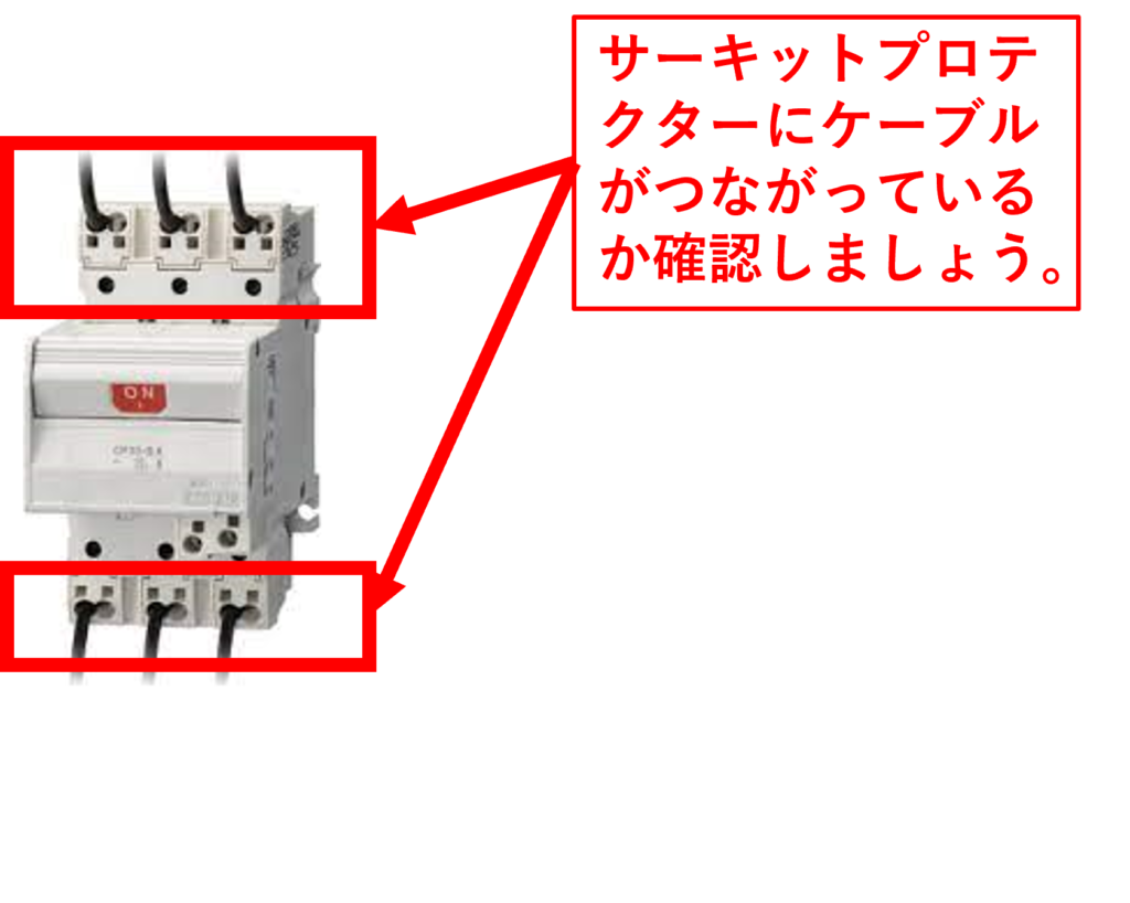 ブレーカーやサーキットプロテクターをONしても電源が入らない場合は電源ケーブルが正しく接続されていない可能性があります。