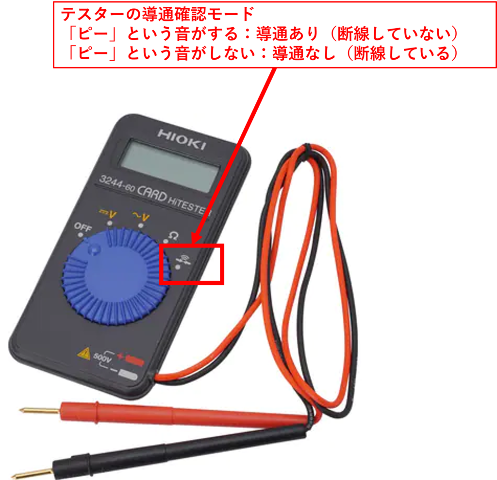 断線を確認する際にも先ほどと同じようにテスターを使います。