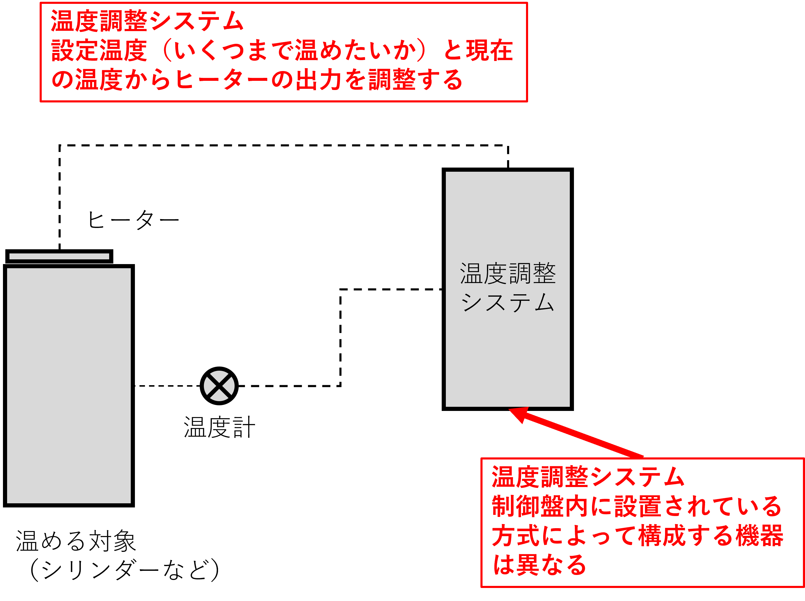 ヒーターの温度調整システムのイメージは以下の通りです。